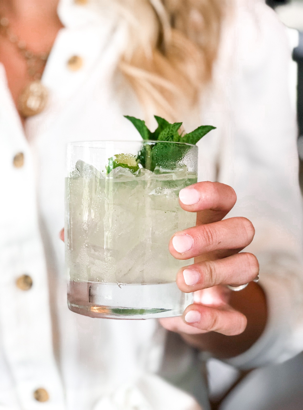 Add all ingredients to cocktail shaker. Shake and strain over ice in low ball glass. Garnish with mint and lime wedge. Enjoy!!